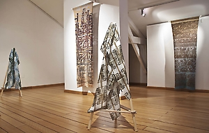 installation vue photos reportées sur tissus jacquard ou pure soie
